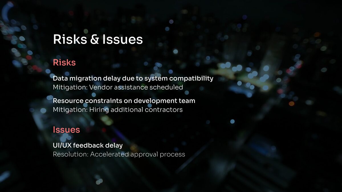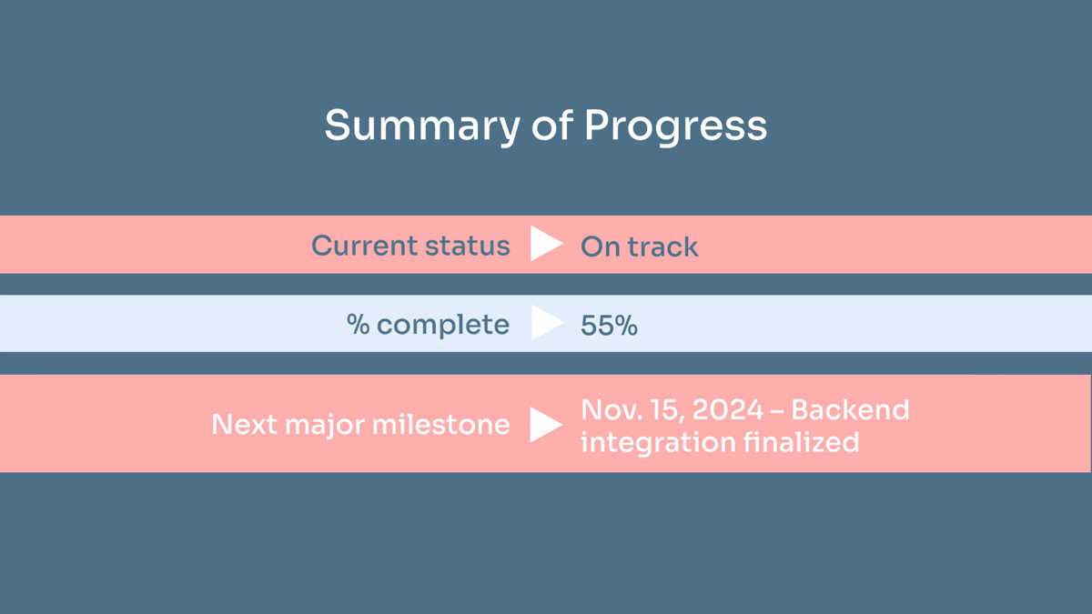 Elevate your project presentations with our “Project Status Report” video template. Craft clear and compelling updates effortlessly, and keep your team aligned with high-impact visuals and customizable elements. Perfect for managers and coordinators looking to showcase project progress and milestones convincingly.
