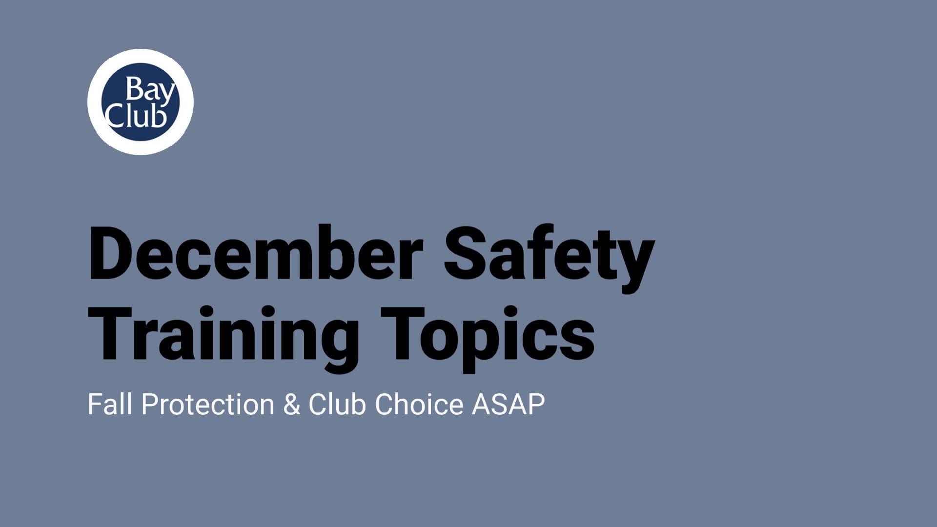 Safety Topics - December 2022
